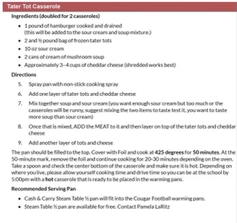 What is a Cougar Football Team Dinner? Each week a group of parents sign up to shop, cook and bring prepared food to CHS Commons where together we we will feed the coaches, trainers and players.
